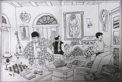 5. Die jüngste Person auf dem Bild ist der Junge auf der rechten Seite. Er schaut sich Bücher an. Aber wenn Sie sich sein Hemd ansehen, werden Sie feststellen, dass es auf der einen Seite einen langen Ärmel und auf der anderen Seite einen Dreiviertelärmel hat.