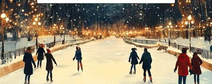 Vor Ihnen liegt ein Bild, das eine Eislaufbahn mit Besuchern zeigt. Die schöne Winterlandschaft scheint auf den ersten Blick perfekt zu sein. Doch in Wirklichkeit verbirgt sich darin ein grober Fehler.