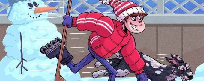 Auf dem Bild sehen wir einen Jungen, der auf dem Eis Schlittschuh läuft, und einen Hund, der neben dem Jungen herläuft. Auf den ersten Blick mag es so aussehen, als gäbe es keinen Fehler in dem Bild, aber das ist nicht der Fall. Wenn Sie genau hinschauen, werden Sie feststellen, dass einige Dinge falsch gezeichnet wurden.